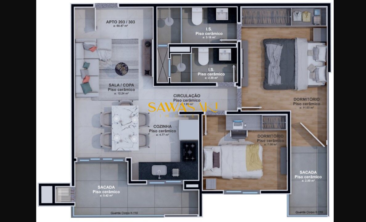 Área Privativa60,02m²