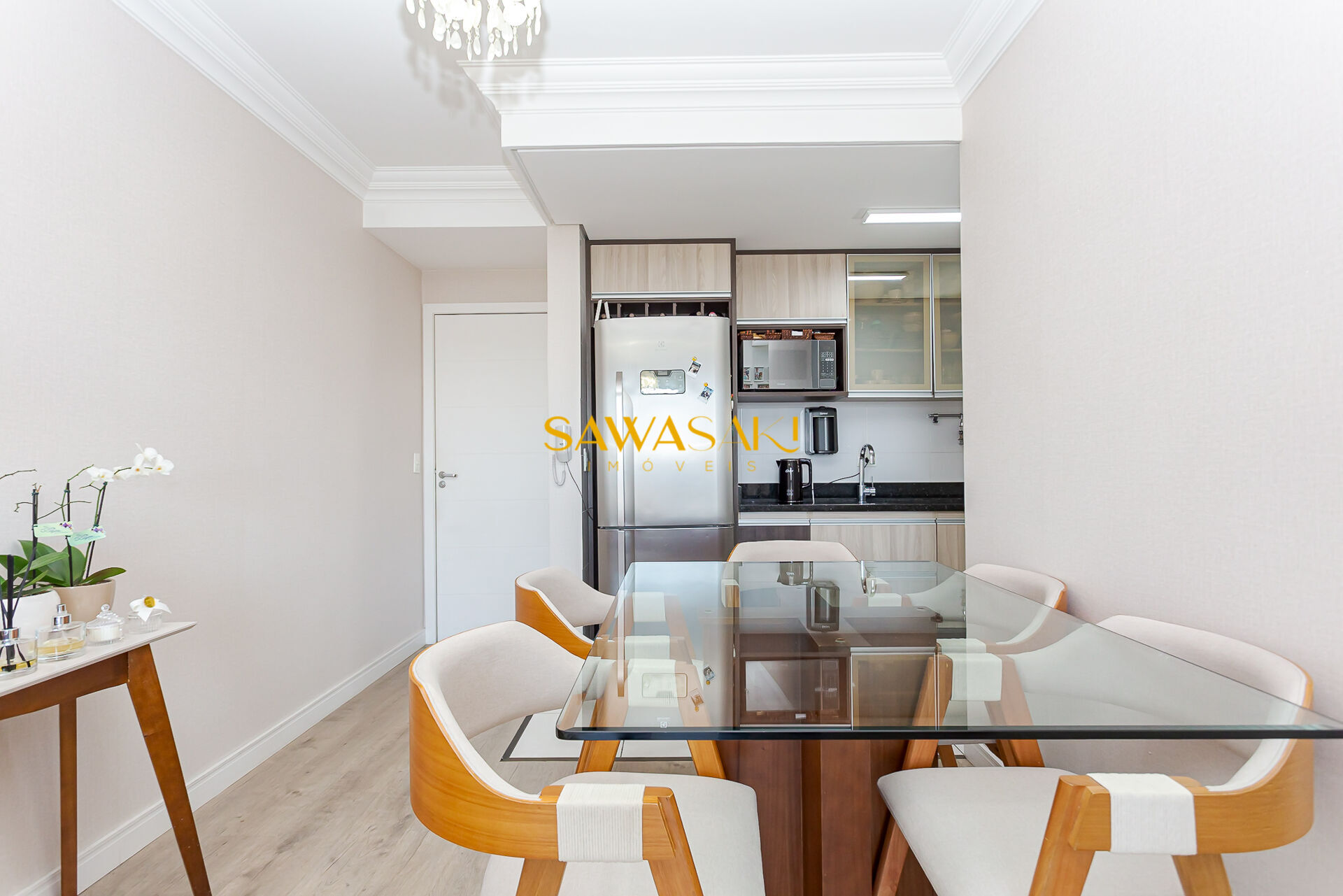 Permanecem todos os móveis planejados de primeira linha.