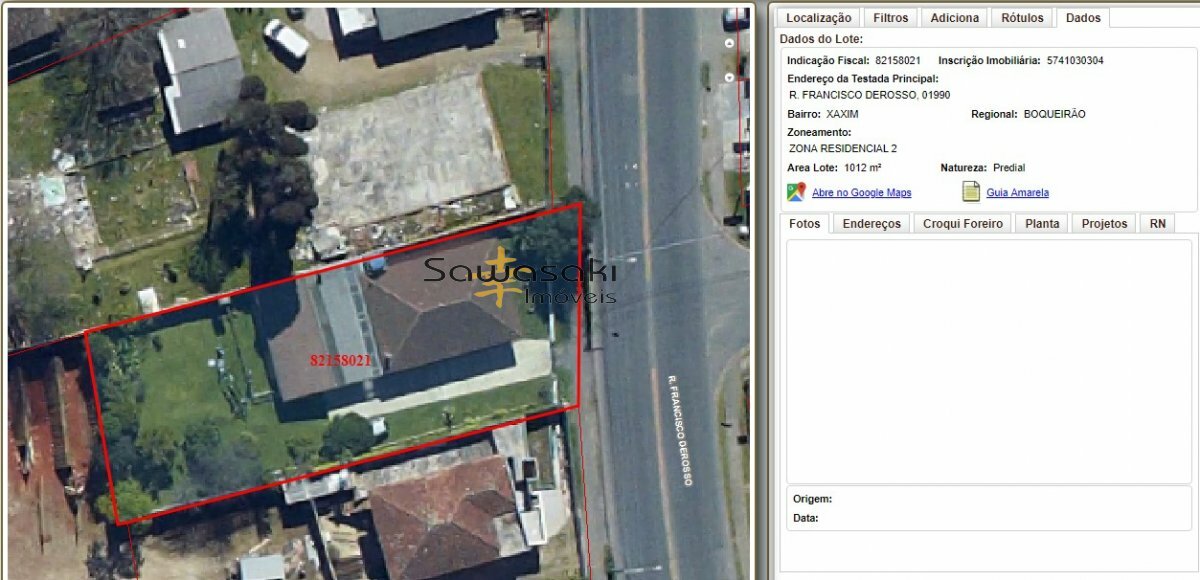 Rua Francisco Derosso, 1990 - Xaxim - Curitiba/PR - 81830-285Ficha do imóvel